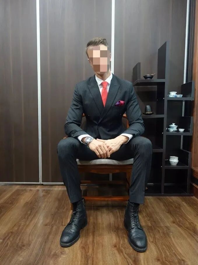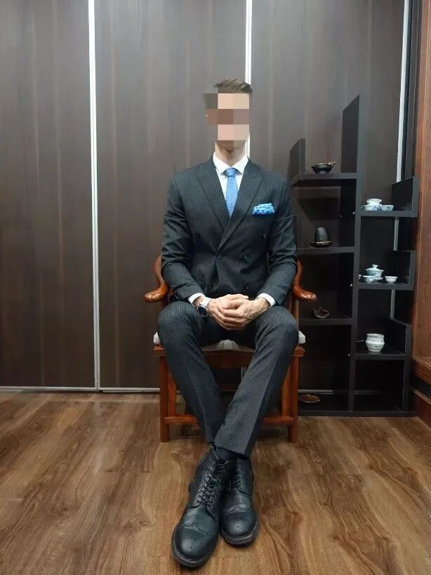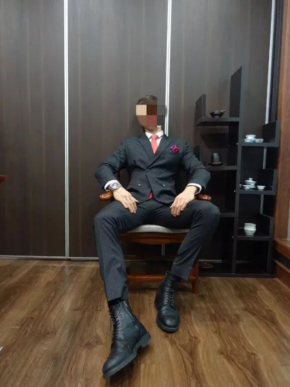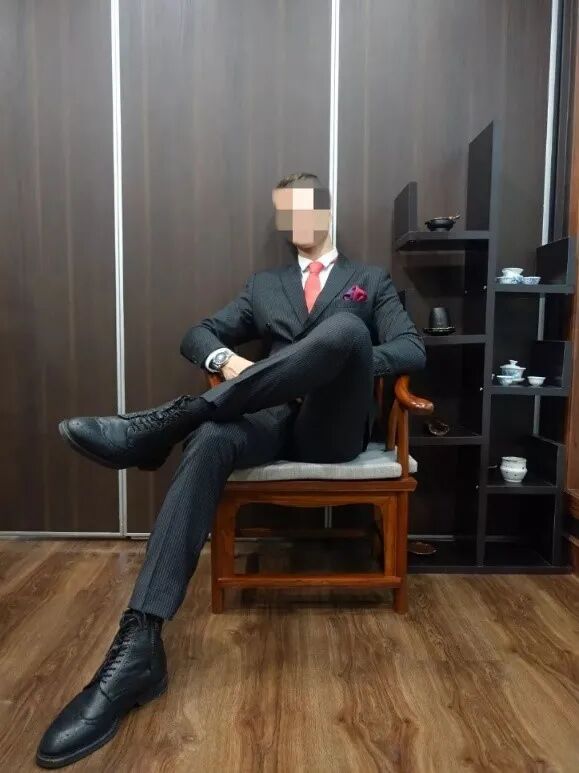 正式场合中允许稍微翘一下腿,但需注意幅度,上图明显太过了,露鞋底非常不礼貌,而且上身也没有挺直。