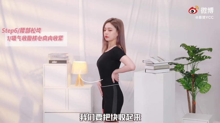 吸气收腹核心向内收紧。