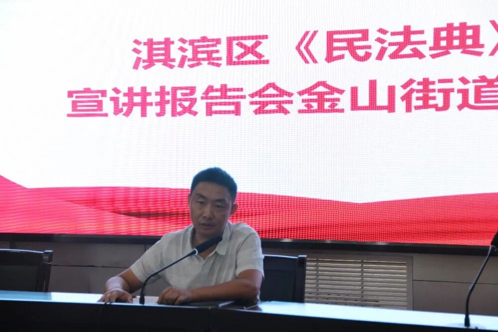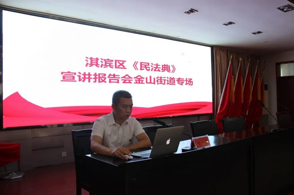 2020年8月27日上午9时,河南世纪唐人律师事务所副主任杨红军应金山街道办事处的邀请,来到金山街道办事处进行“千场报告会,法典进万家”《民法典》金山站宣讲。
