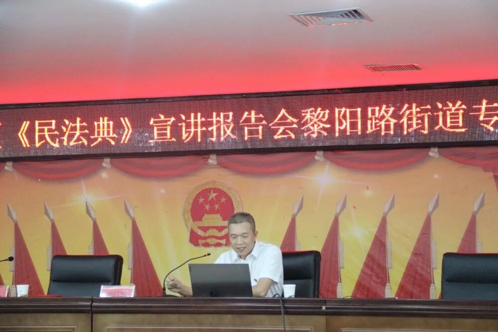 当日下午三时半,杨红军副主任应邀来到了黎阳路街道办事处,开展“千场报告会,法典进万家”,黎阳站的《民法典》宣讲。