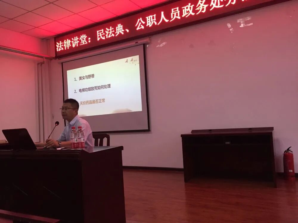 2020年8月18日河南世纪唐人律师事务所受安阳益和热力公司邀请,为安阳益和热力公司四百余位工作人员开展了为期三天的法律大讲堂。课程以《民法典》和《公职人员政府处罚》为基础并结合经典案件与最新案例来展开。